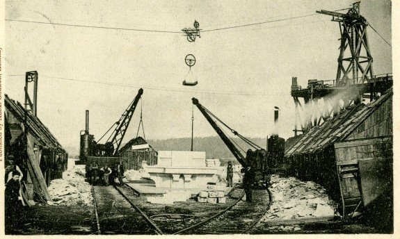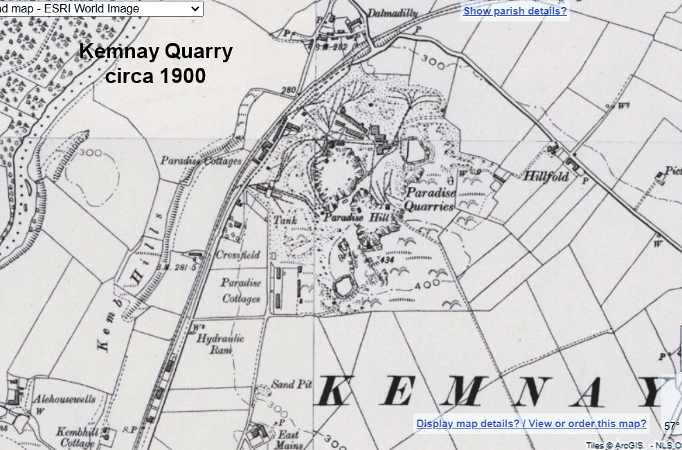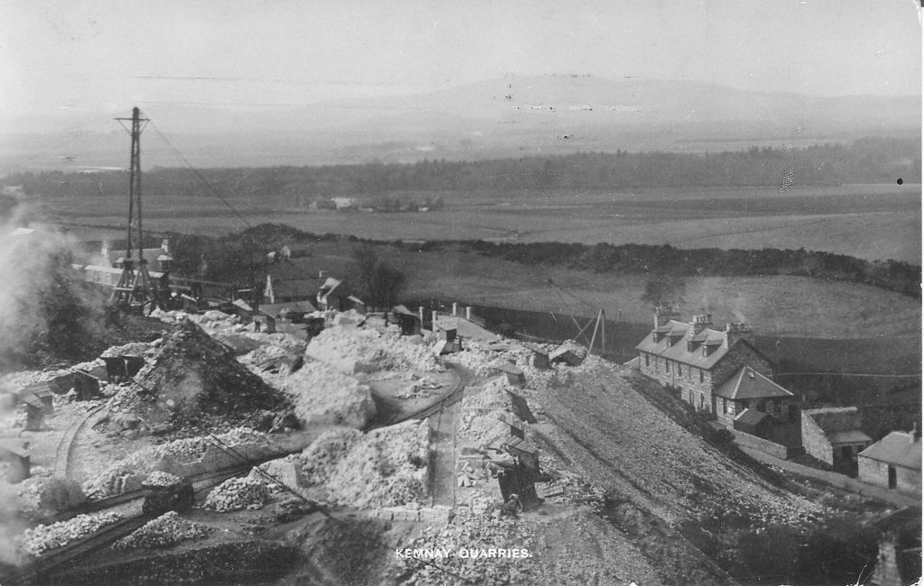 Kemnay Quarries, were from 1858 leased by John Fyfe, an Aberdonian; by 1880, 250 men employed with 7 steam cranes and 2 Blondins (wire lifts – claimed as his invention). Blocks 30ft long and 100 tonnes in weight were produced in its heyday. Celebrated for supplying granite for the Holborn Viaduct. It was opened in 1830 by John Fyfe, and became fully commercial in 1858.